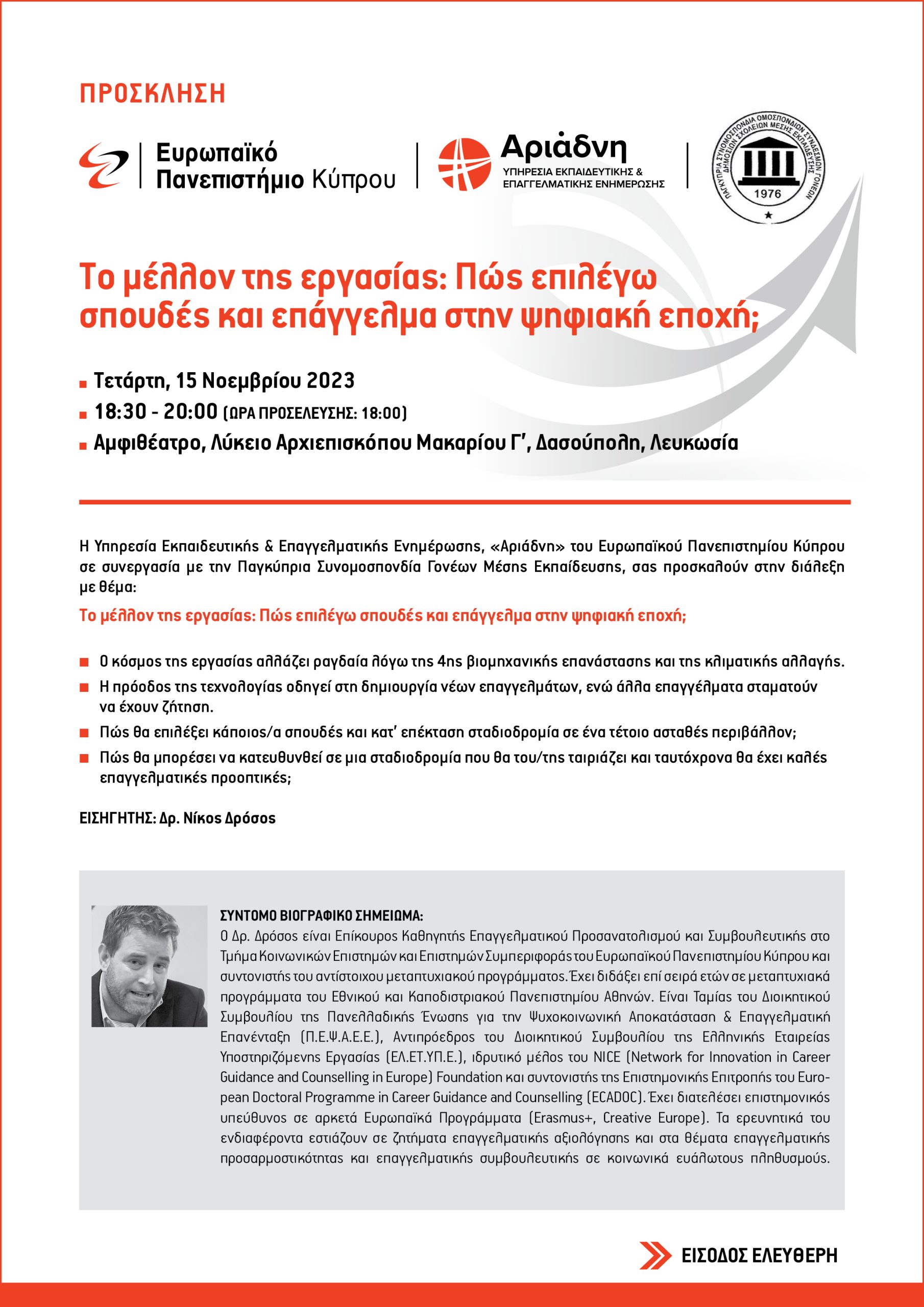 Μία διάλεξη στα πλαίσια της συνεργασίας της Παγκύπριας Συνομοσπονδίας και του Ευρωπαϊκού Πανεπιστημίου
